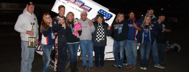Marysville, CA (February 28, 2016) – Auburn’s Andy Forsberg was perfect in his first race of 2016. Driving the PT Shocks / PitStopUSA / Autism Awareness #7c, Forsberg set quick time in qualifying, won the eight-lap heat race and led the majority of the 25-lap main event. However, with seven laps to go, Forsberg made contact with a lapped car that resulted in a broken right front torsion arm. Tension was high around the racetrack as most people questioned if he could nurse his broken car home to a victory. Not only did he win but held a comfortable lead at the checkered flag. “I have no idea how we survived those final few laps,” said Forsberg post-race. “Our front end is pretty beat up and looks like the front axle is bent.” Yet he noted, “This is a big thing for me. I started my racing career at Ernie Purssell Speedway and that’s where I met Sherm and his family. This is a race I always wanted to win.”