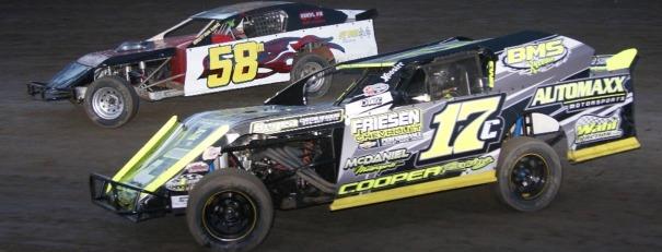 The IMCA Sport Modifieds put on another solid show with 15 drivers competing on this night. Jim Waller grabbed the early lead. Yet, by the second circuit Todd Copper assumed the top spot. From here on out it was Cooper’s race. He led the final 19 laps and was only threatened late by Brian Cooper. The AutoMaxx team from Marysville finished in the top two spots. After the race nearly 30 people lined up for Todd’s victory lane photo. Needless to say, the Cooper family is heavily involved with this race track. Phillip Shelby drove from the tenth starting spot to finish third. He battled with Jerry Bartlett for numerous laps. Bartlett came home fourth while Waller drifted back to fifth.