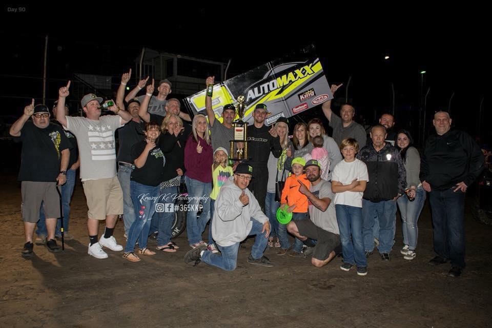 Marysville, CA (March 31, 2018) …. Hard work and persistence paid off for William Fielding Saturday night at Marysville Raceway. What was a six-year journey for Fielding finally paid off when the local driver led all 25-laps to capture his first career sprint car main event. “I have been dreaming of this moment for the last six years,” said Fielding in victory lane. Fielding was surrounded by over 30 family members and friends. The victory lane photos were reminiscent of a NASCAR celebration as multiple people kept jumping into the numerous pictures that were being taken. It was a fitting way for him to pick up his first win. Just two weeks prior, Fielding volunteered at the track on a Friday to help get it ready for the Civil War sprint car race that following Saturday night. “This is real special,” said Fielding. “I am overwhelmed with happiness.”