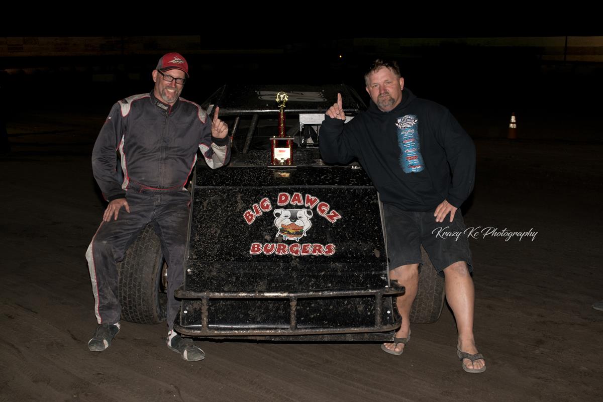 Tyler Lightfoot jumped out the early lead during the Super Stock feature. However, on lap two, Lightfoot spun around and came to a stop. This moved Rod Oliver to the front. Oliver would go on to lead the final 13-laps with no issues. The race was scheduled to go 20-laps, but with three cars remaining at the half way point the officials decided to cut it back to 15. Chris Warner did all he could to compete with Oliver but in the end, he just didn’t have enough and finished second. Richard Vanderploeg was the final car remaining and finished third. On lap seven, Lightfoot and Dennis Wood collided sending them both back to the pits and done for the night.