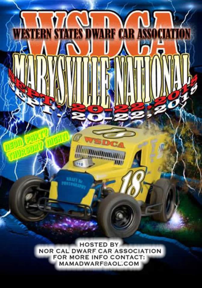 (Marysville, Ca) 9-22-18…Kevin Bender not only won the Saturday night Dwarf Car Nationals main event at Marysville Raceway, but he also picked up another Veteran Division championship in the Western States Dwarf Car Association. Bender passed Brian Quilty on lap 15 and went on lead the final five laps to secure the win. Quilty, who had won the night before, finished second. Third spot went to Dan Geil. Tenth-place starting Tommy Brown came up to finish fourth. Maybe the most impressive drive was completed by Eric Weisler who went from 16th to fifth.