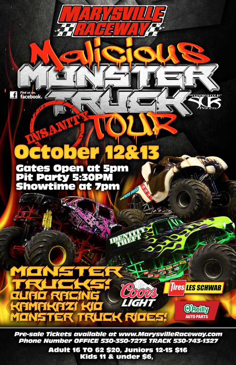 Marysville Raceway fans of Monster Trucks, please show this coupon from your phone or tablet at the ticket office this Friday night and receive $5 off your adult, junior or senior ticket only. Gate purchases only!
