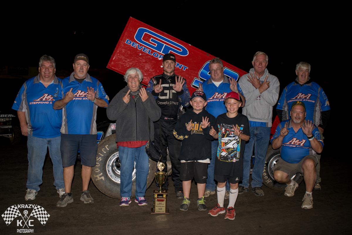Jake Morgan was in the right place at the right time to capture the wingless sprint car main event. Morgan led most of the event until veteran champion Terry Schank Jr. passed him on lap 15. Schank extended the lead and took the white flag as the leader. But going into turn one something mechanical broke inside the Joe Hunt Magnetos No. 1 and he brought the car to a stop near the turn two exit. Morgan restarted the event as the leader and held on to win. Give credit to Shannon Newton. Newton was all over Morgan the last two laps but never quite able to pass him for the lead. Newton finished second. Peter Paulson is always in the hunt for a win. Tonight, he came up two spots short in third. A total of 10 wingless sprints attended the final show.