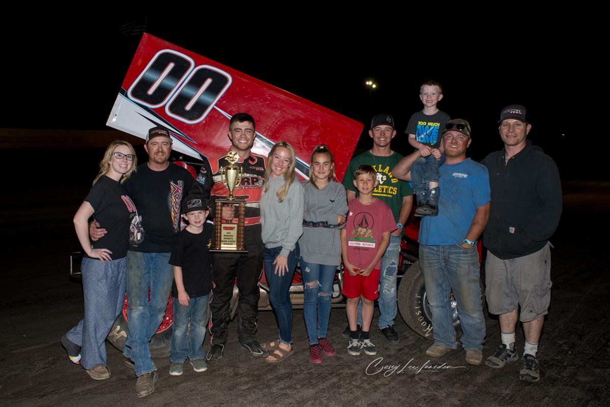 Marysville, CA (May 11, 2019) …. Making only his fifth career start in a winged 360 sprint car, 17-year-old Steel Powell won the 25-lap feature event Saturday night at Marysville Raceway. Powell, another one of these talented Cycleland kids, led every lap in route to the popular win. The race itself was slowed by seven cautions and two red flags. Even with the hiccups in the race, Powell stayed cool, calm and collected in winning his first race. Peter Paulson made his 2019 debut a success by finishing second. Billy Wallace scored a third-place finish. Korey Lovell had an up and down night. Lovell was involved in once of those early yellow flags and came back to finish fifth. Same goes with Colby Wiesz. Wiesz crashed on lap 14 and worked his way back to a fourth-place finish. Championship point leader Michael Ing clipped a spinning car and flipped. Ing’s winning streak, three, came to an end. Wiesz turned the fastest lap in qualifying. His lap time was 12.532. Wiesz, Ing and Roberto Kirby each one eight lap heat races. A total of 19 cars competed tonight.