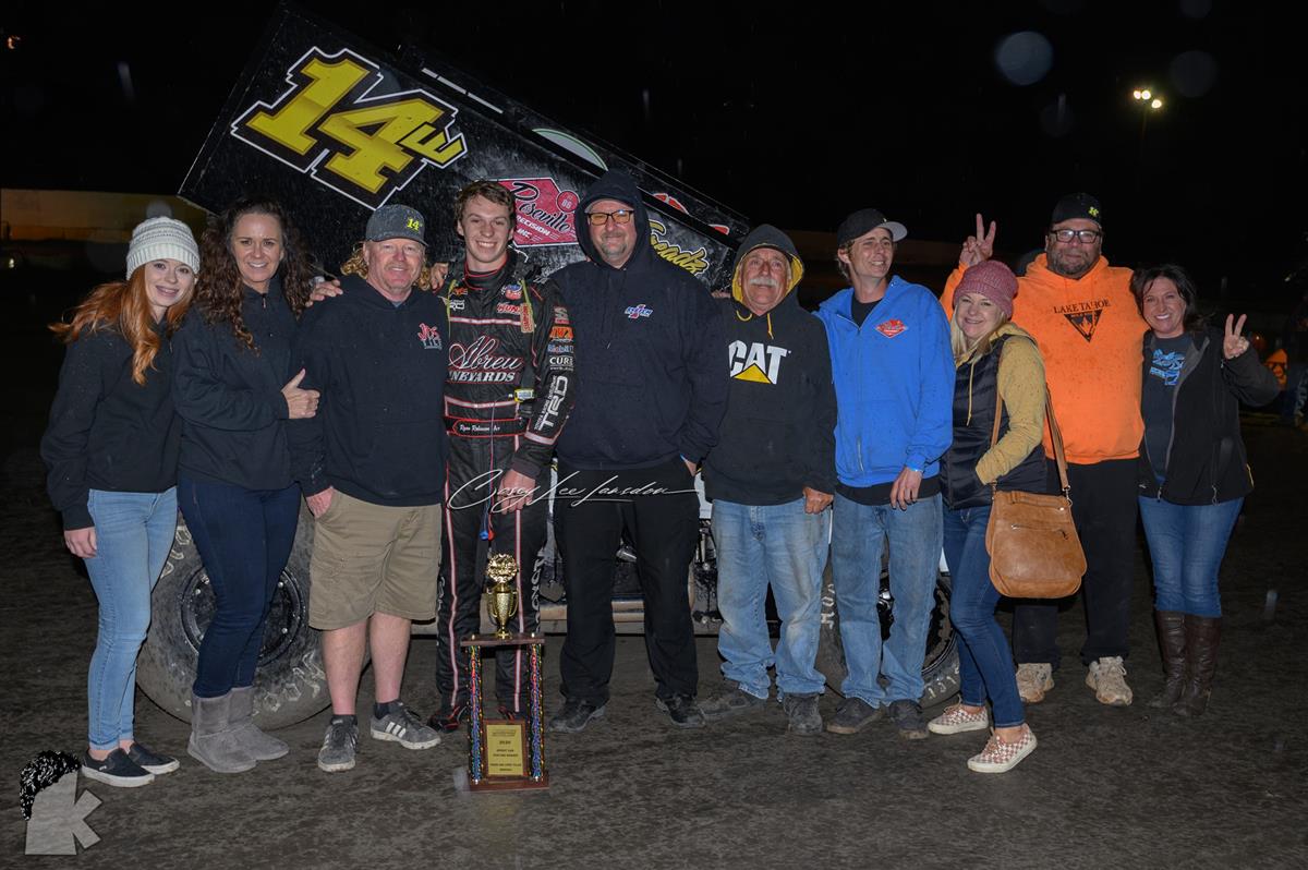 (Marysville, CA 2/29/20) … Ryan Robinson bested a 14-car field of winged 360 sprint cars to get the popular win during Saturday nights Sherm and Loree Toller Memorial at Marysville Raceway. Robinson led all 25-laps to capture his second win of 2020. In fact, he has won two of the three races he has entered in 2020. Robinson’s win was solidified when he held of Andy Forsberg during a late race restart. Forsberg railed the outside in turns one and two to pull even with Robinson. The two battled side by side until getting back to turn one, when Robinson shut the door on Forsberg going into turn one. It was a veteran move, and the winning decision by Robinson. Rising NASCAR star Jesse Love impressed the crowd tonight with a solid third place finish. Look for this 15-year to continue to great things behind the wheel of a race car. 2019 track champion Michael Ing finished fourth. Billy Wallace rounded out the top five.