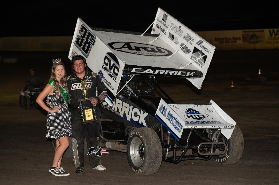 (Marysville, CA 8/12/20)…Blake Carrick earned a hard fought win Wednesday night at the Marysville Raceway. Carrick won his first winged 360 sprint car race of the season at Marysville. For most of the race he held off his older brother Tanner Carrick. Andy Forsberg was also in the mix until a flat tire sidelined his charge. Sean Becker brought out a late yellow when is No. 35 machine bicycled in turn three and came to a stop in turn four. This allowed a hard charging Colby Wiesz to move from fourth into second on the final two laps. Tanner lined up behind his brother on the restart, but Blake had a great restart and was able to hold off all comers. Michael Ing drove another solid race to finish fourth. Brad Bumgarner earned another hard fought fifth place finish. Nick Larson finished sixth and earned an extra $100 from Paul Olmsted Plastering. Forsberg tuned the fastest lap in qualifying at a 13.106. A nice total of 25 cars showed up for the Wednesday night show.