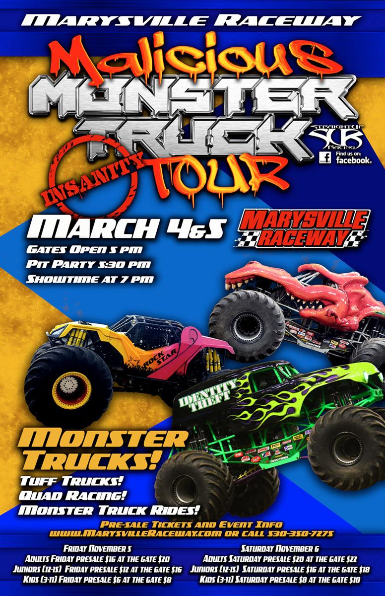 (Marysville, CA 3/1/2022) The ground pounding Monster Trucks come to Marysville Raceway on Friday and