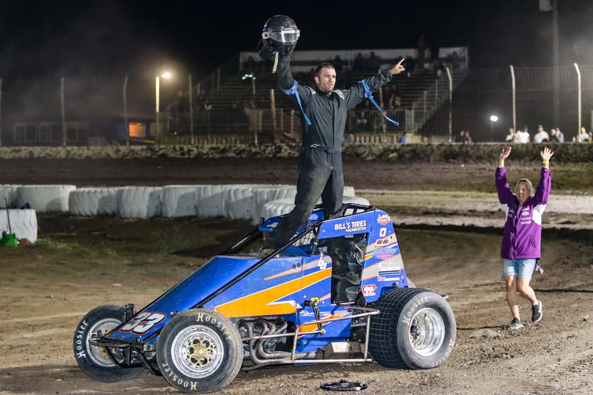 The Hunt Magnetos Wingless Sprint Tour was spectacular all night. In their one and only appearance, 25 drivers showcased their talents. The 25-lap main event produced an amazing finish. Josh Young took over the top spot-on lap six and proceeded to lead the next 17 laps. Yet, the final lap was the most exciting of the event as DJ Johnson ripped around the top coming out of turn four to take the lead as the two raced towards the white flag. With a strong cheering section for Johnson going absolutely nuts, Johnson led the final lap to secure the win. Young finished in the second spot. Nick Robfogel showed speed all night and finished in the third spot. High-flying Shane Hopkins was the show. Starting in the 16th spot, Hopkins thrilled the crowd with split second decisions on the track to pass fellow competitors and finish fourth. Hopkins is one of those drivers that gives 100 percent effort all the time. Marcus Hardina advanced five spots to cross the finish line in fifth. Trey Walters led a handful of laps early in the race and ended up with a sixth-place finish. The overall event was successful and filled with close non-wing sprint car racing. It was nice to see the Hunt stars and cars produce a great show.