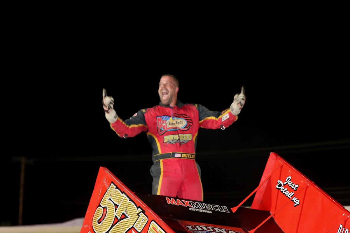 (Marysville, CA 7/29/23)…The 2022 Marysville Raceway track champion Bobby Butler led all 25-laps to secure his first win of the season in the 360 sprint car division. Butler had high hopes of repeating as track champion this season, but a surplus of mechanical issues and being in the wrong spot at the wrong time has sidelined that goal. Yet, like a true champion, Butler never let the heartbreak of racing get him too down. Tonight, he showed everyone that he was back in top form and ready to close out the season with a bang. Butler is a popular driver at Marysville and following the win Butler was greeted with numerous fans and friends in victory lane. William Fielding chased Butler for all 25 laps but never got close enough to challenge him for the win. Fielding started the night by turning the quickest lap in qualifying with a 13.061. Fielding drove the famed Richardson No. 8 to a solid second place finish. Dawson Hammes drove a great race and charged to a third-place finish. Brad Bumgarner rose the ranks to finish fourth. After contact on lap one with Brian McGahan Jr., Drake Standley charged from the rear of the field to finish fifth. Standley picked up the win in heat race one. Butler earned the top spot in heat race two. A total of 17 cars attended tonight’s race.