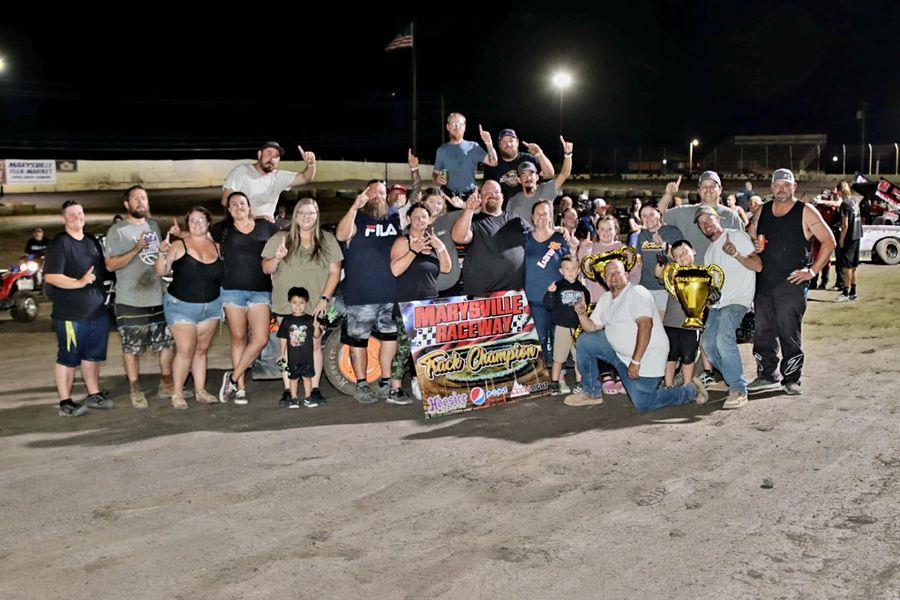 (Marysville, CA 8/12/23)…It’s hard to keep a champion down. After winning the track title last season, Howard Law knew this year he would have a target on his back. Law once again rose to the occasion and won his second consecutive Hobby Stock track championship. Law finished tonight’s race in third, but he had done enough throughout the season to hold off Zach Lindgren by 28-points. Law earned six wins and 10 top five finishes. The race itself featured an epic finish. Jacob Johnson won the race in a photo finish with Kyle Cheney. Both drivers gave it their all as they raced side by side towards the checkered flag. The margin of victory was a mere 0.036 seconds. It was the closest finish all season. Fourth place went to Brian Horn, who rebounded about an early spin. Chris Van Roekel charged up to a fifth-place finish. Cheney finished third in the points. Joe Gillock finished fourth. Rounding out the top five was Brian Horn. Tonight, we sent off Sebastain David in grand fashion as he circled the Raceway with the American Flag during the National Anthem. Next week he leaves for the University Northwestern Ohio, High Performance Motorsports School.
