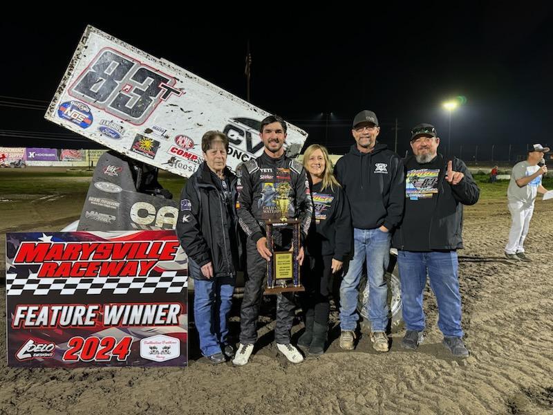MARYSVILLE, Calif., February 24, 2024…Lincoln’s Tanner Carrick proved to be too tough for the rest of the field and dominated the 30-lap winged 360 sprint car main event on Saturday night. Auburn’s Andy Forsberg led the first few laps. Forsberg admitted he saw Carrick try the bottom side of turns three and four and on the next lap went down lower to anticipate Carrick trying to pass him again. Yet, Carrick stayed on the top of the track and drove around Forsberg to the lead. From there on out Carrick was lights out. Carrick pocketed extra money $100 tonight from Mel’s Transmission for winning the main event and Paul Olmstead Plastering for turning the fastest lap in qualifying. Third place went to Dylan Bloomfield. Northern California will be in for a big treat this season watching Bloomfield and his team assert themselves as one of the top combinations this season. On lap 15, Carson Hall and Ashton Torgerson collided in turn two and came to a stop. Both were inside the top five before the accident.