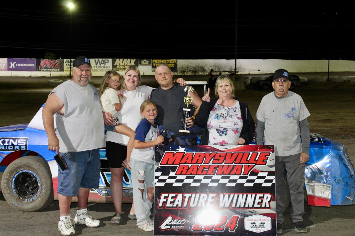 MARYSVILLE, Calif., June 15, 2024…The Turn-Key ATM Hobby Stock main event might have been the last race to roll out on to the track Saturday night at Marysville Raceway, but it was the best race of the evening. The final few laps were spectacular. Race leader Matt Beardslee had been up front since lap three. Beardslee was holding off the likes of Howard Law and Jacob Bright for most of the race. Lurking in the distance was Kyle Cheney. Tonight, Cheney started 11th and had raced into fourth on lap 13. The next few laps he chased down Law and Bright. From lap seven to lap 17, Law and Bright battled for the second spot. Then everything changed with two laps remaining. Cheney, who had been patiently waiting for his chance, seized the opportunity and not only passed Bright and Law, but somehow passed Beardslee for the lead on the final circuit. The crowd went wild. Cheney led the final lap and held off Law to get the win. Law finished in the second spot. Matt Beardslee was credited with third. He was so close to that first win of the season. Jason Clayton Sr. bounced back from an early issue and finished fourth. Dave Thompson had a solid race and finished fifth. Two drivers that had finished in the top five on the track were later disqualified in tech after the feature. They were Jacob Bright and Zach Lindgren. It was Cheney’s fourth win of the season. Cheney also wo the third heat race giving him a clean sweep.